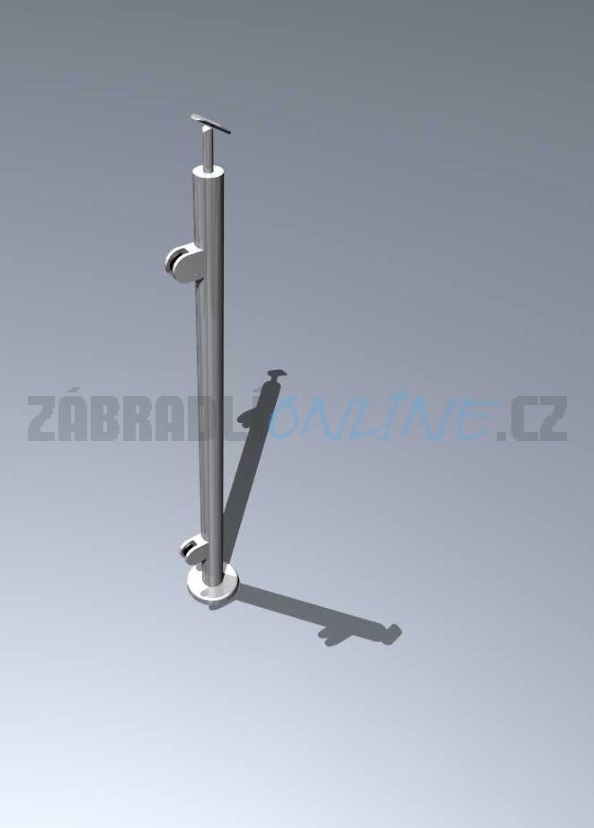 Nerezový sloupek zábradlí pro skleněnou výplň, pr. 42,4 mm. Jedná se o koncový sloupek se dvěma držáky skla. Způsob kotvení shora. Konstruovaný pro madlo libovolné velikosti. Materiál je nerez K320, jakost AISI 304. |