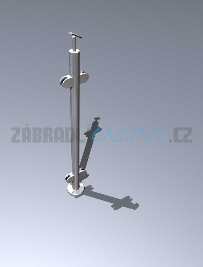 Nerezový sloupek zábradlí pro skleněnou výplň, pr. 42,4 mm, přechodový. Jedná se o sloupek se čtyřmi držáky skla. Způsob kotvení shora. Konstruovaný pro madlo libovolné velikosti. Materiál je nerez K320, jakost AISI 304. |