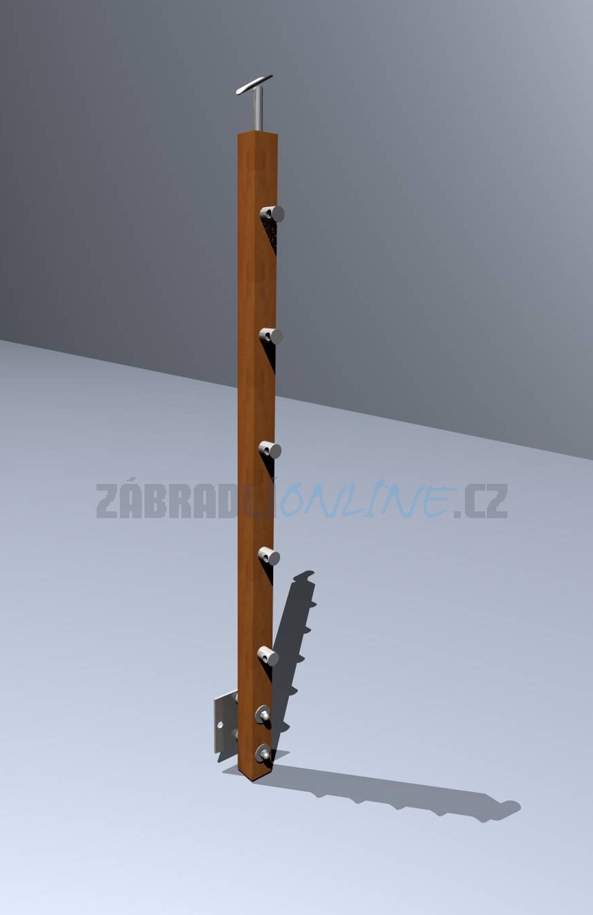 Bukový sloupek zábradlí, 40 x 40 mm, boční kotvení. |